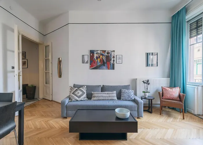Az apartman 5 percnyi sétára van a Fővám téri metróállomástól és 150 méterre az Utaskiszallito pont buszmegállótól.